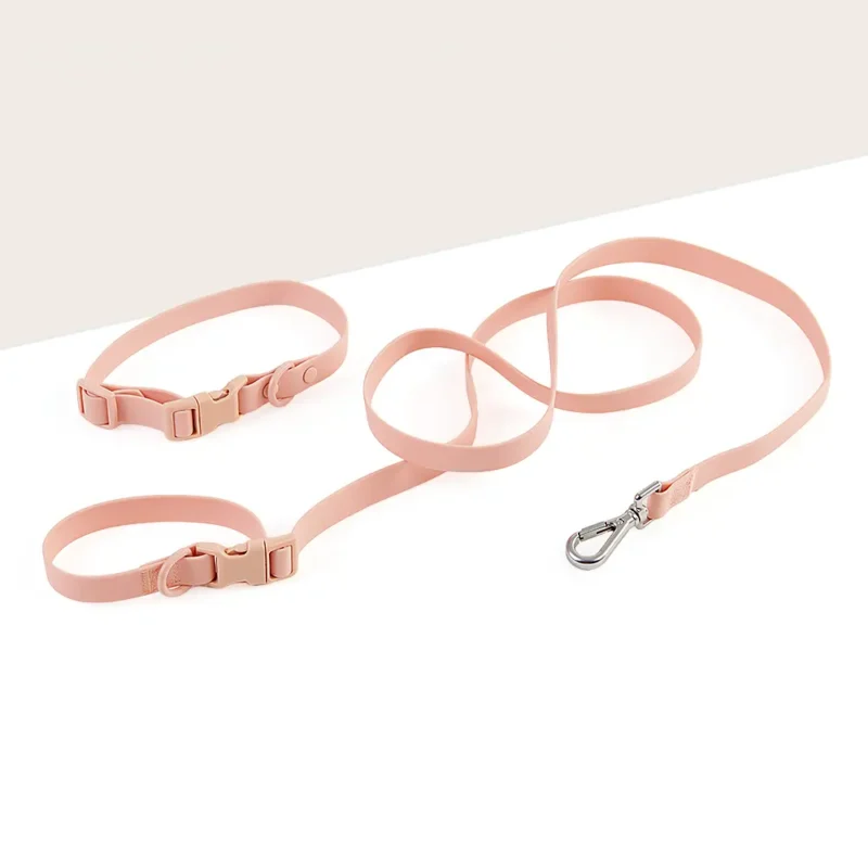 Elevate every walk with a set designed for style and strength. Crafted from coated nylon that repels mud, odors, and rain, this trio includes a zinc-alloy buckle collar, a matching snap-hook leash, and a refined vegan leather waste bag holder. Streamlined, durable, and effortlessly polished — the everyday essential for pups and their people.